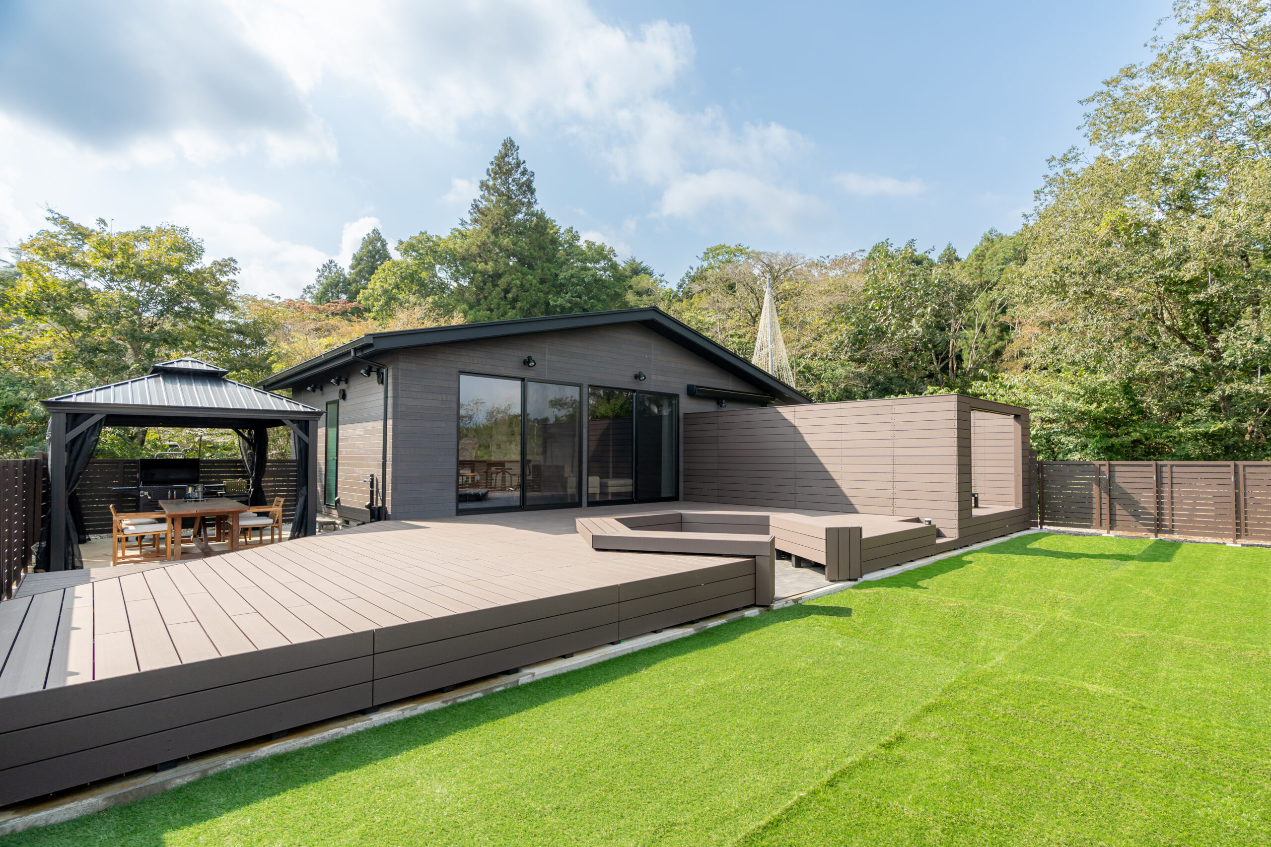 静岡県富士宮市猪之頭に佇む「なか富士 一棟貸し」は、雄大な富士山を望むロケーションにある、全3棟のプライベート貸別荘です。