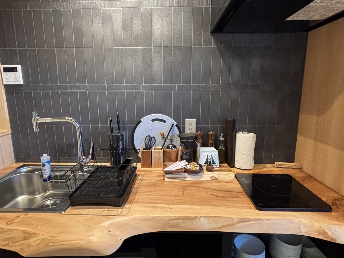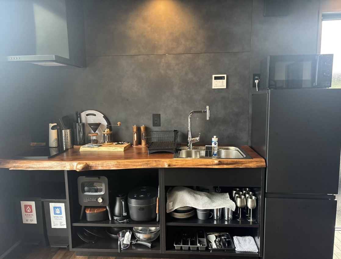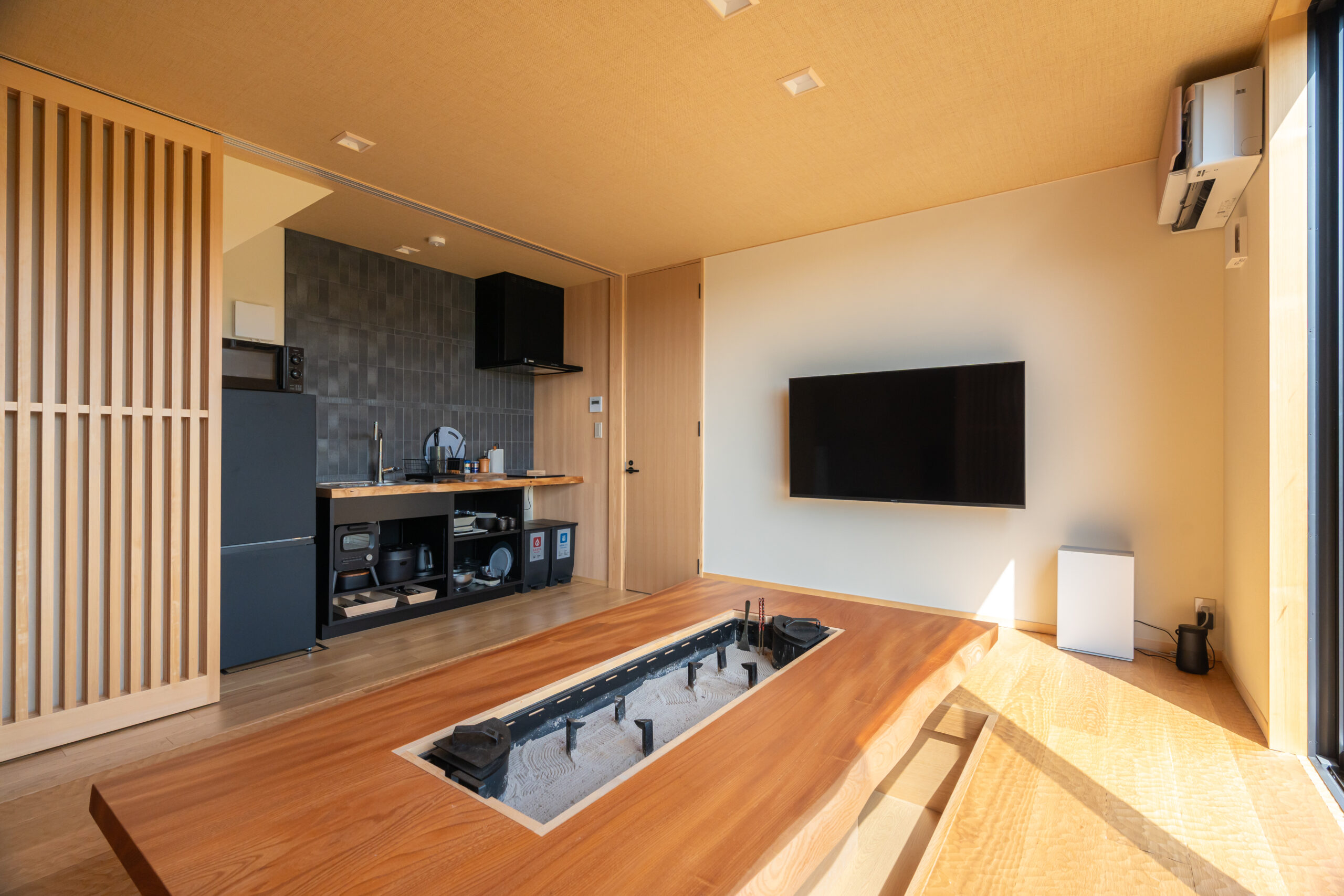 冷暖房/TV/Wifi/ドライヤー/冷蔵庫/電子レンジ/電気ケトル/炊飯器/フライパン鍋など調理用具/カトラリー一式/囲炉裏テーブル(炭の用意あり)