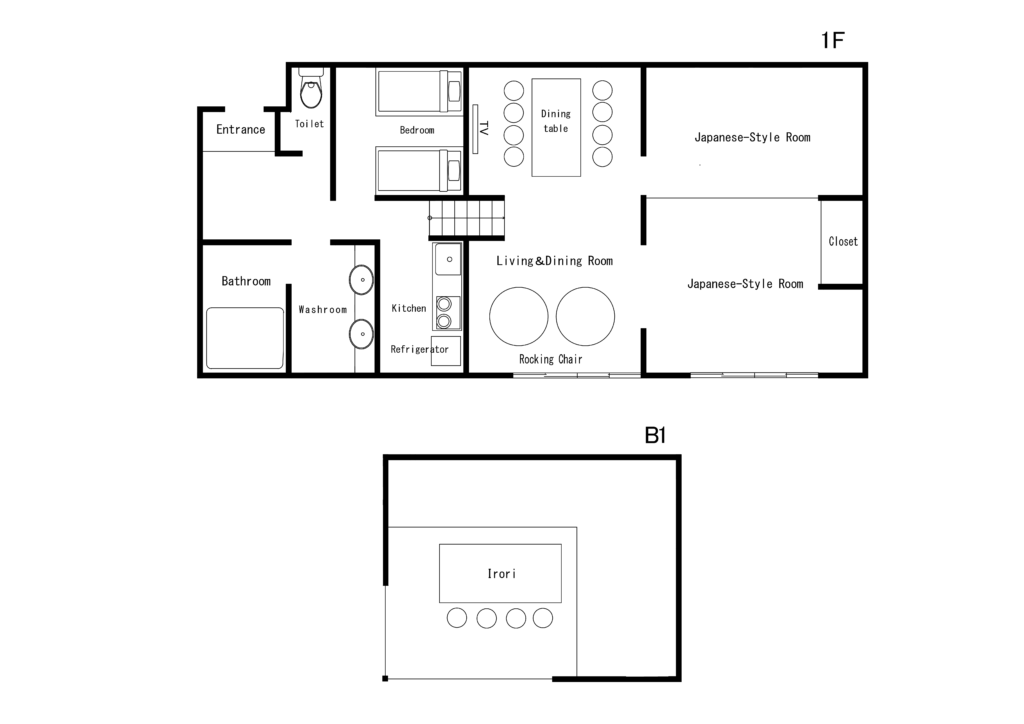 冷暖房/TV/Wifi/ドライヤー/冷蔵庫/電子レンジ/電気ケトル/炊飯器/フライパン鍋など調理用具/カトラリー一式/囲炉裏テーブル(炭の用意あり)